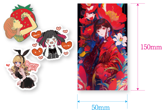 (該当画像:他社の創作物・アニメ、漫画、企業などのイラスト・芸能人、有名人などの写真・ブランド、アーティスト企業などのロゴ・JASRAC、事務所、アーティストが管理している曲名、歌詞・その他当店がNGと判断したもの)